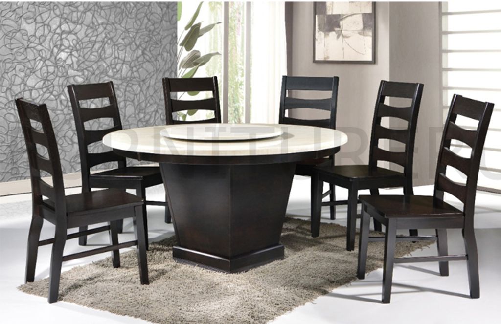 Sharling Marble Top 7PC Dining Set with Lazy Susan