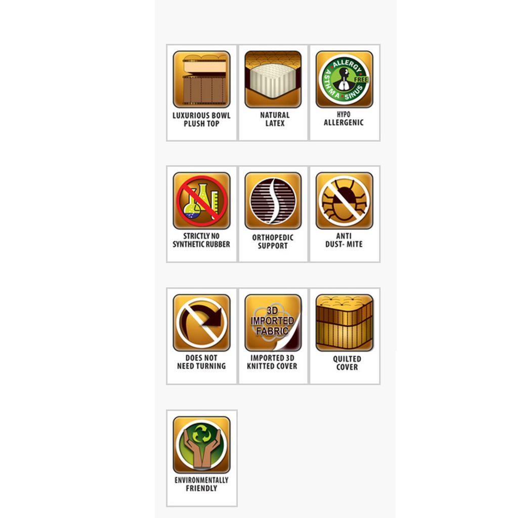 * Specially designed with double bowled pillow tops, using highest quality latex for superior resilience.