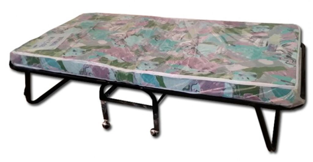 With its sturdy steel structure, attachable caster wheels, and comfortable mattress, this roll-away bed easily converts any room into a sleeping space.Mattress included.
