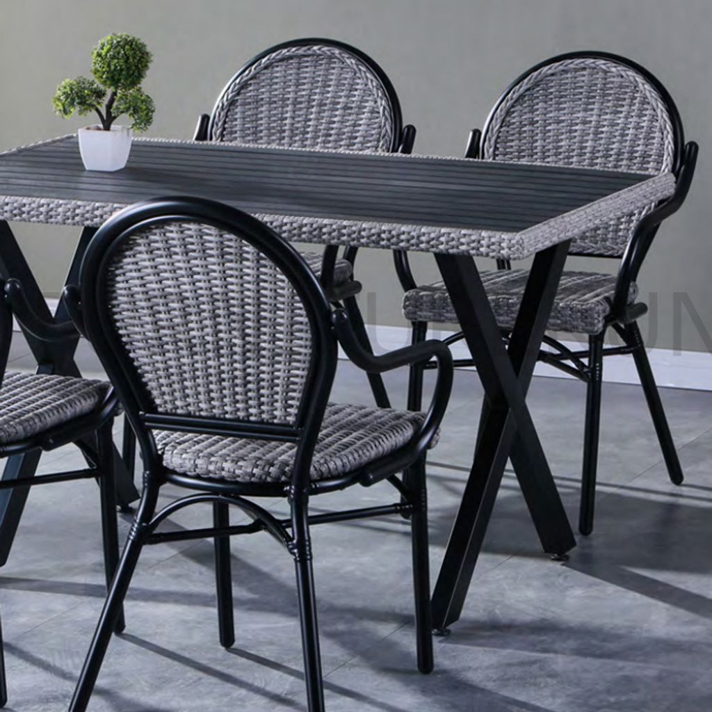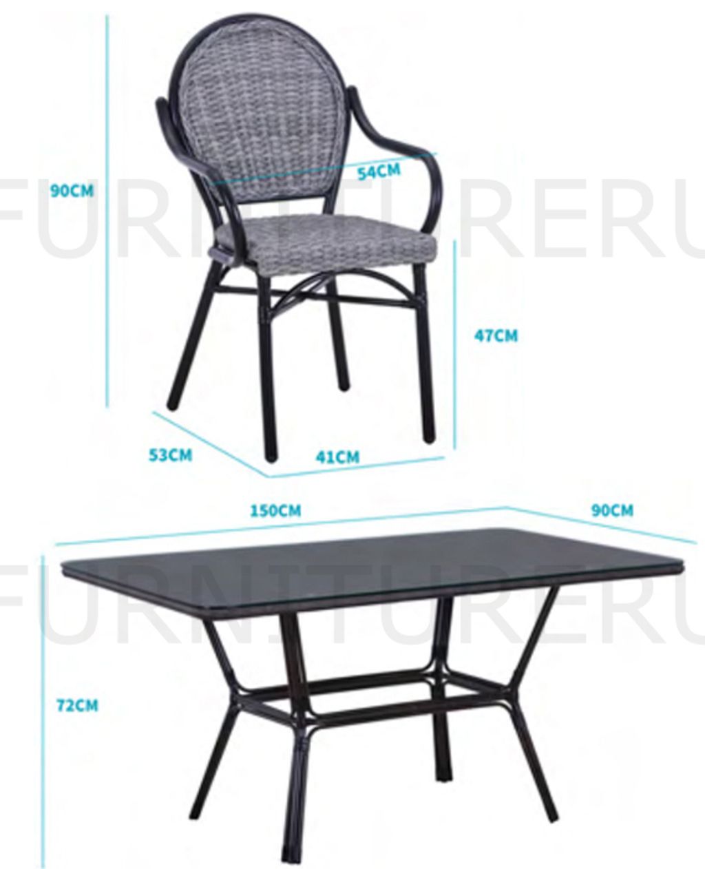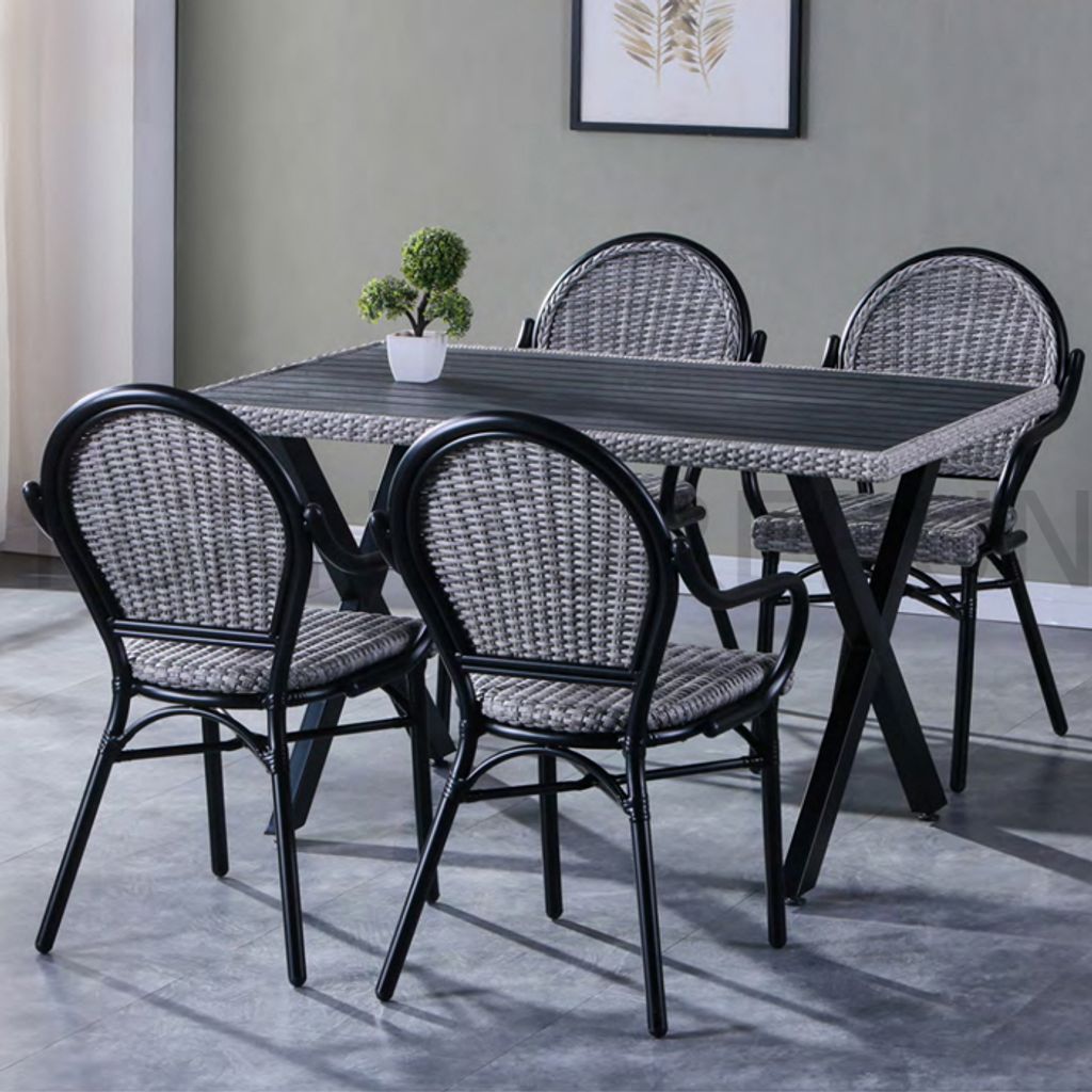 Table - H720 x W900 x L1500MMChair - H900 x D530 x W540 x SH470MMBlack Powder Paint Steel Structure (Suitable for Outdoor)Grey PE Rattan Webbing (Water Resistant + Sunproof)