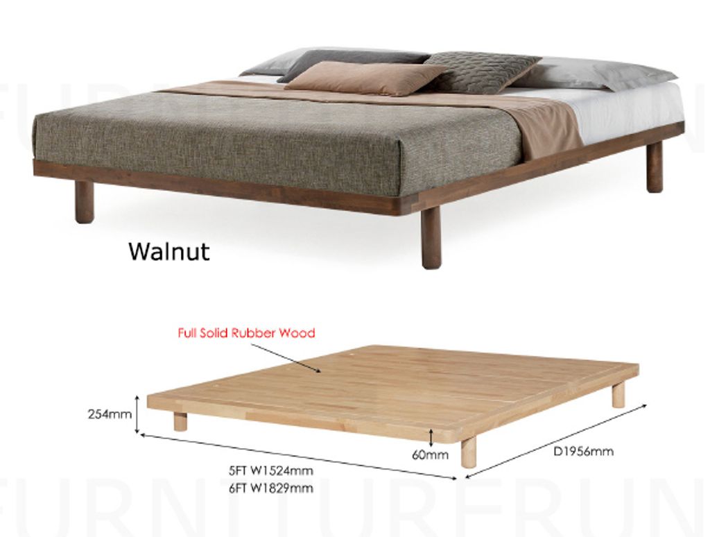Queen - H254 x D1956 x W1524MM King - H254 x D1956 x W1829MM Natural, WalnutFull Solid Rubberwood