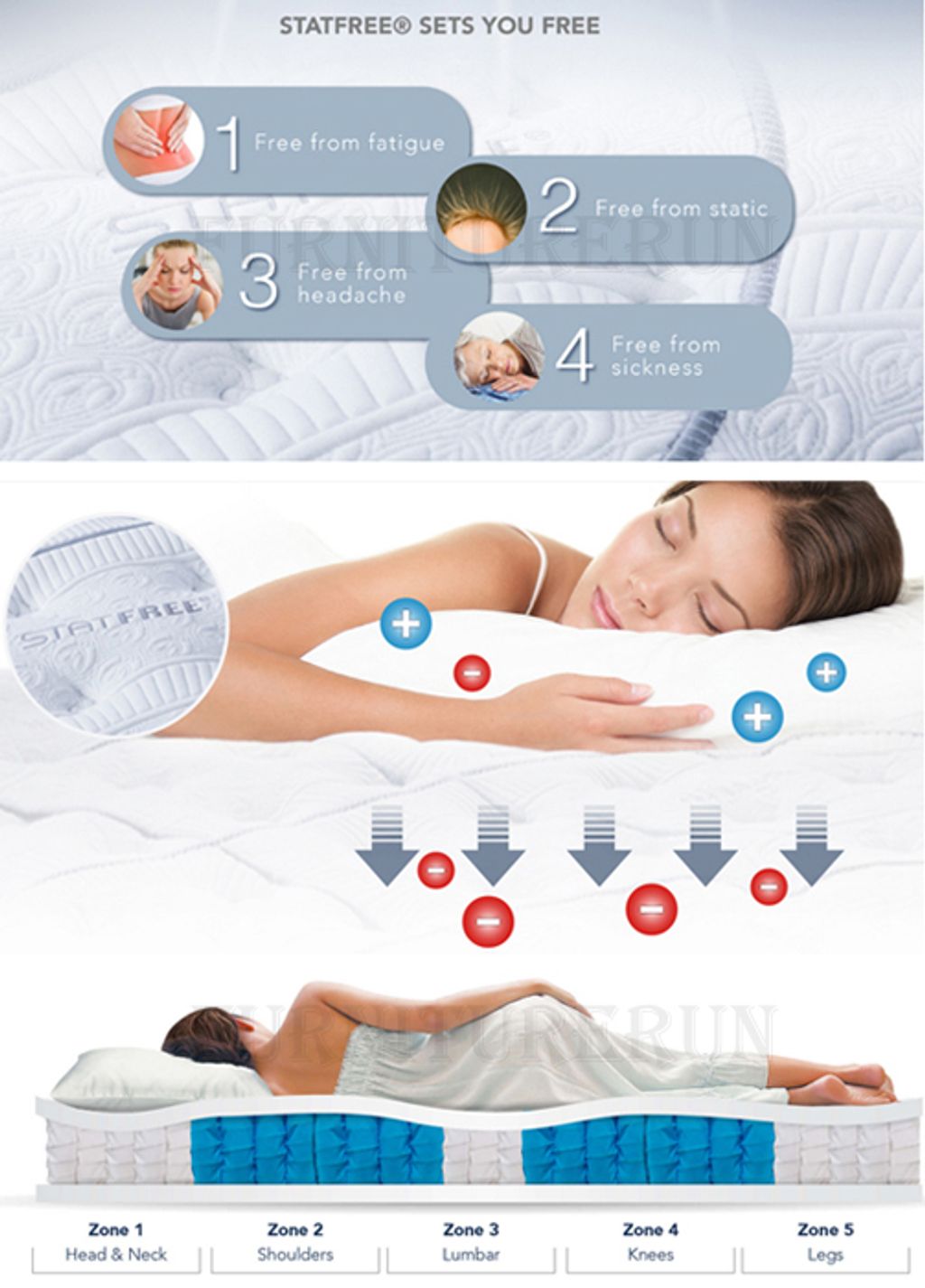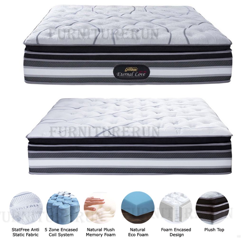 * StatFree Anti Static Fabric* 5 Zone Encased Coil System* Natural Plush Memory Foam* Natural Eco Foam* Foam Encased Design* Plush Top* Thickness 15.5"* 15 Years Warranty