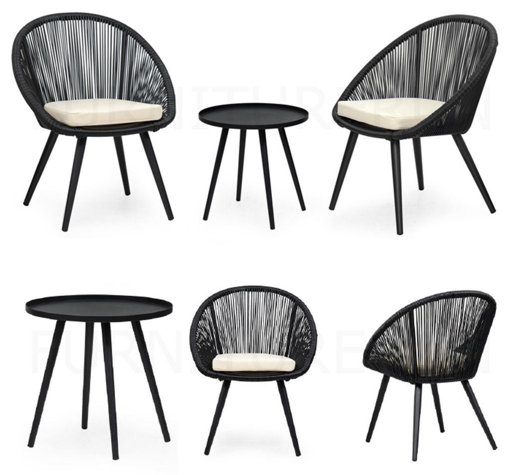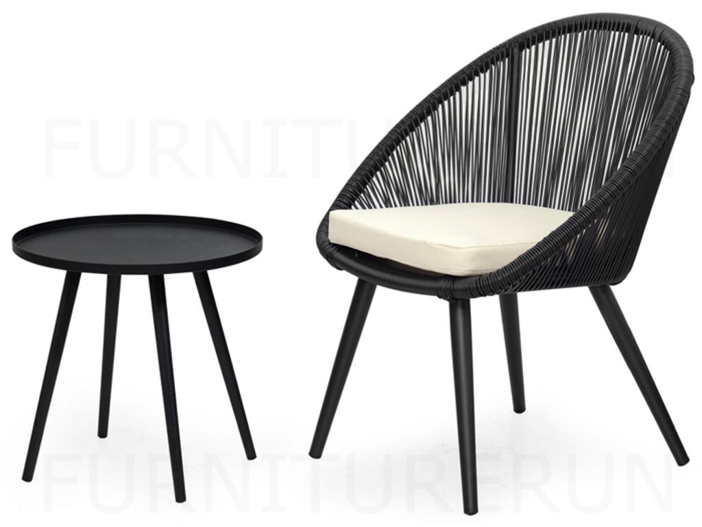 Table - H440 x Diam. 450MM AluminiumBlackChair - H830/480 x D620 x SD490 x W660MMAluminiumBlack/F-Beige, Black/F-KhakiPP & PE WickerQDF Cushion
