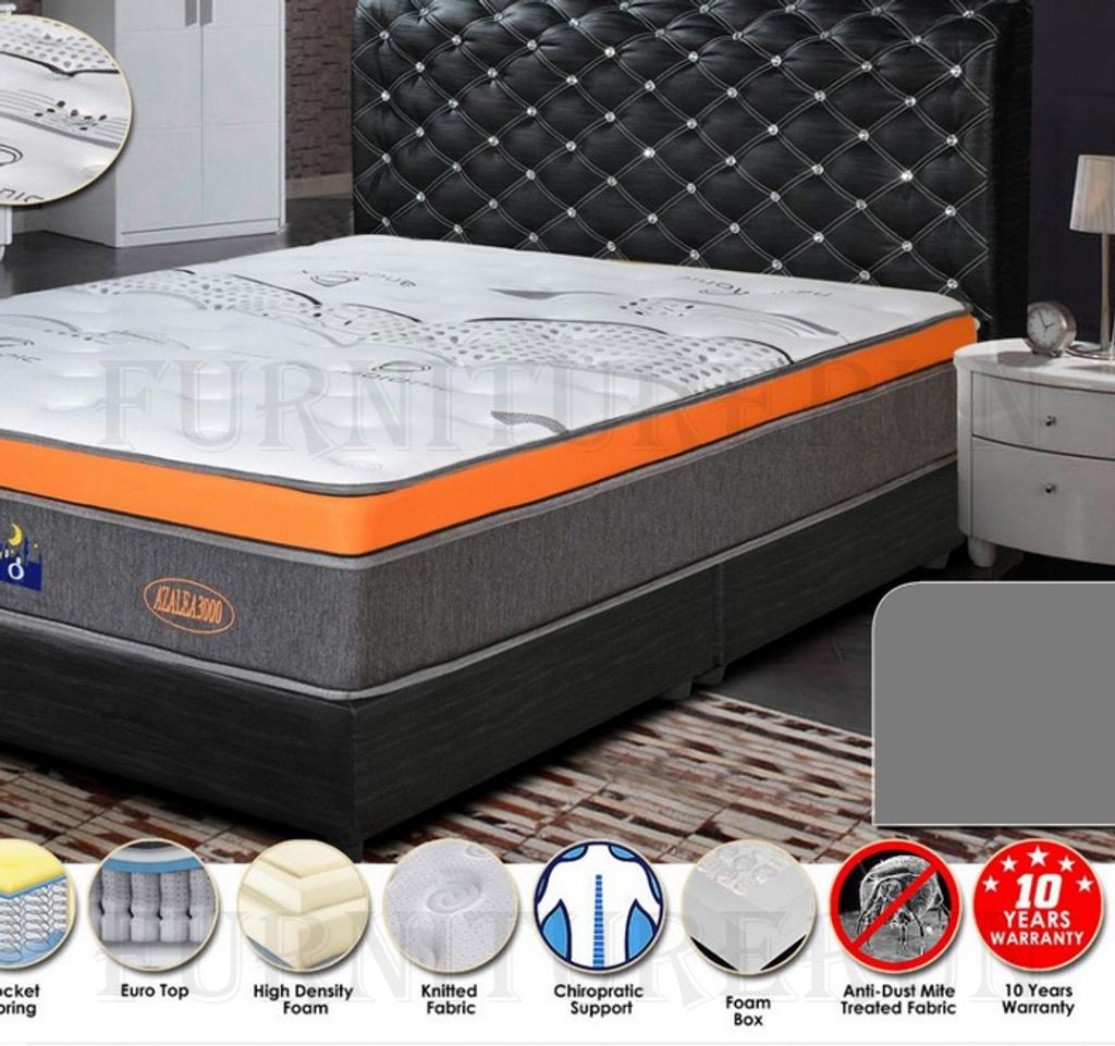 Pocket SpringEuro TopHigh Density FoamKnitted FabricChiropractic SupportFoam BoxAnti-Dust Mite Treated FabricThickness 11"10 Years Warranty