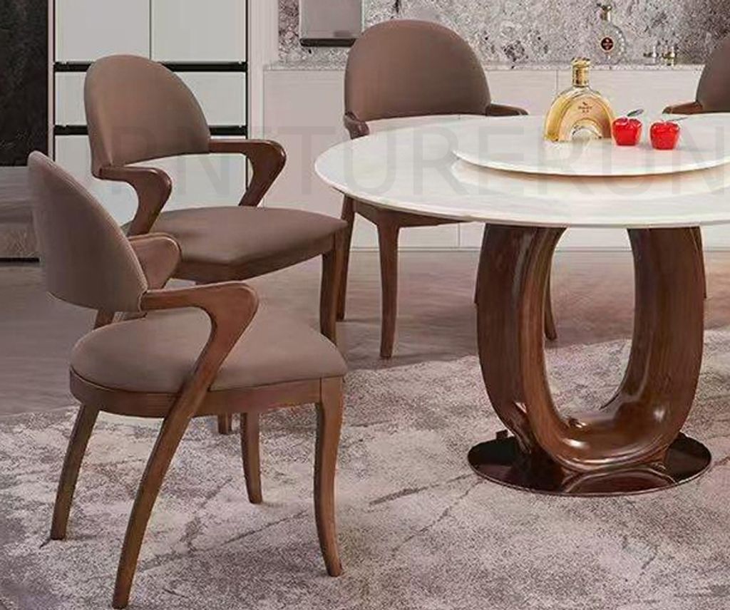 Table - H760 x D1350/700MM White Ice Luxury Marble Top / Solid Ash LegChair - H885 x D455 x W530MM High PU / Ash Wood Frame & Leg