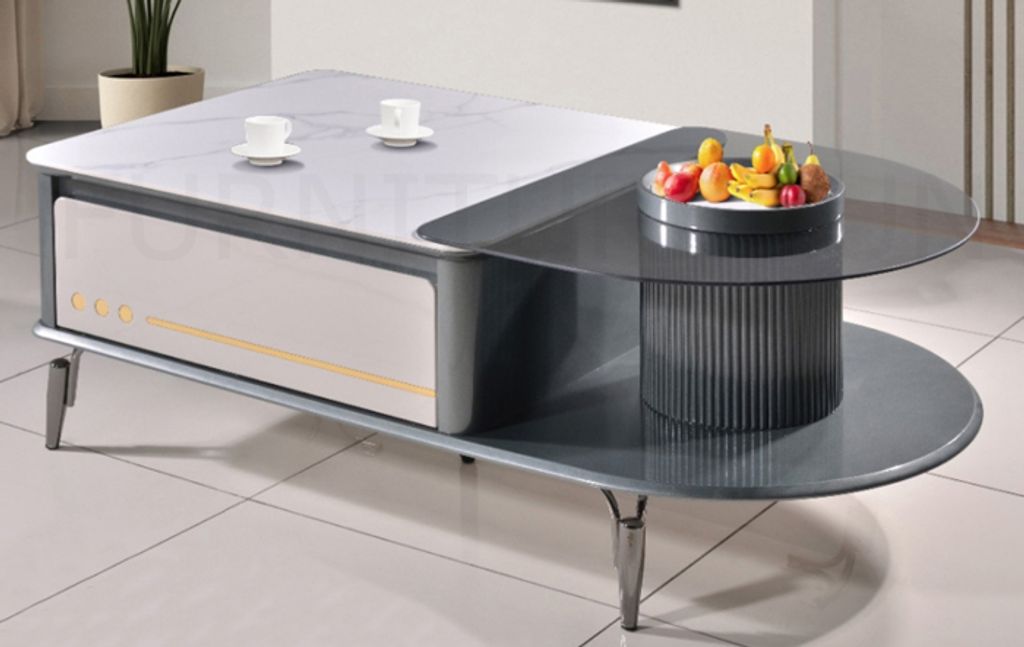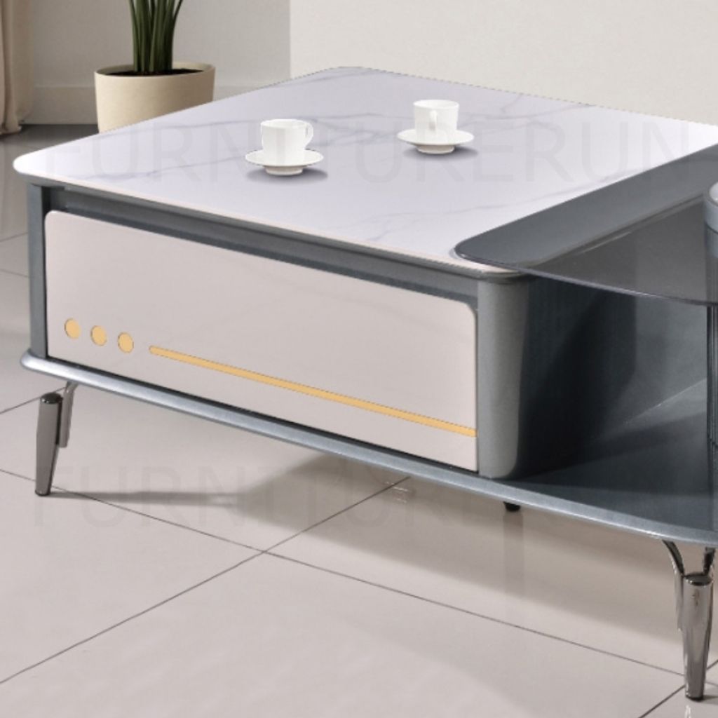 H450 x D700 x W1300MM White Sintered Stone Top & Glass Top