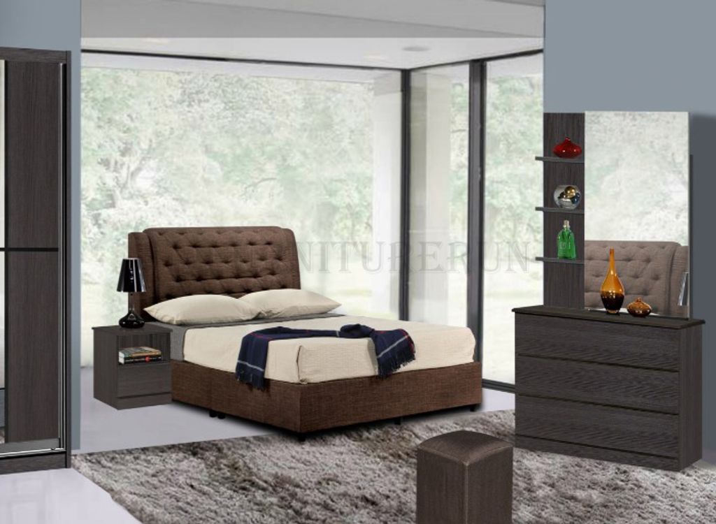 Bed Queen 003 - HB H48" / Divan H8"Dresser Table & Stool - L3'Side Table x 1Wardrobe - 8' x 8'