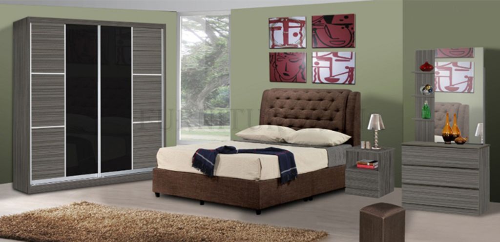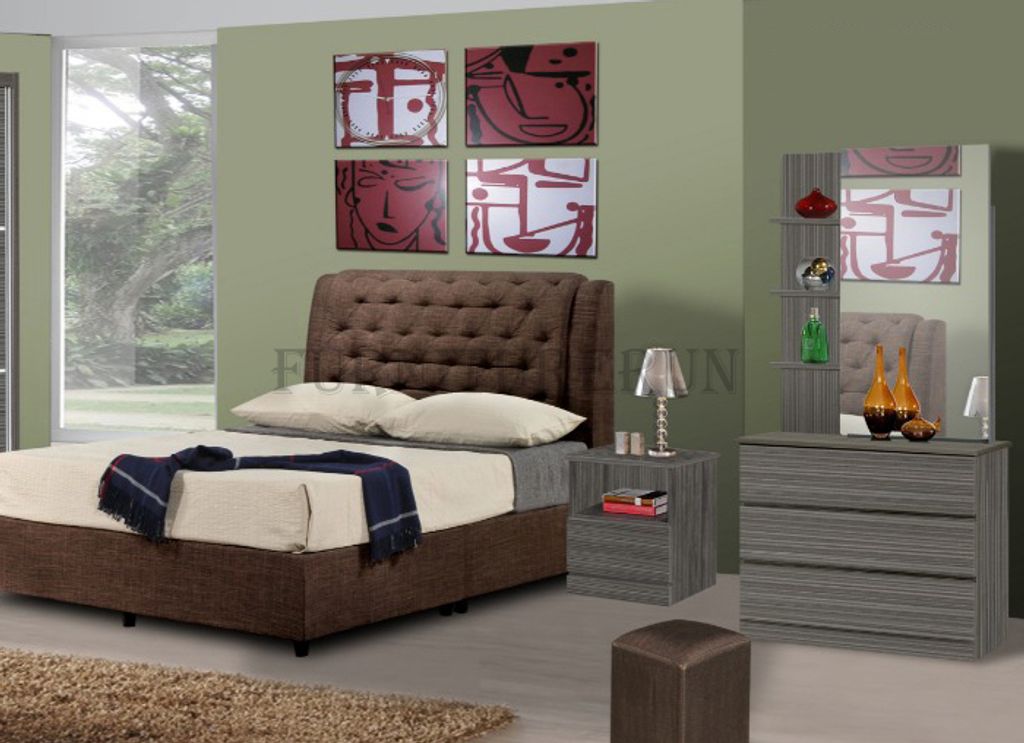 Bed Queen 003 - HB H48" / Divan H8"Dresser Table & Stool - L3'Side Table x 1Wardrobe - 8' x 8'Mattress not Included