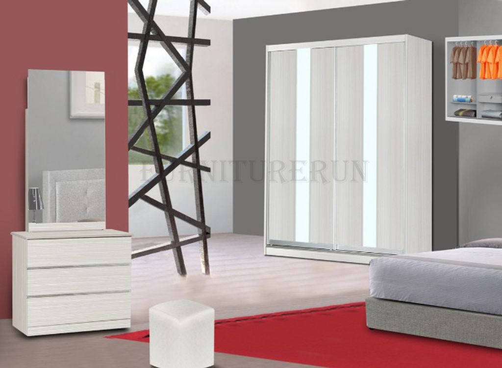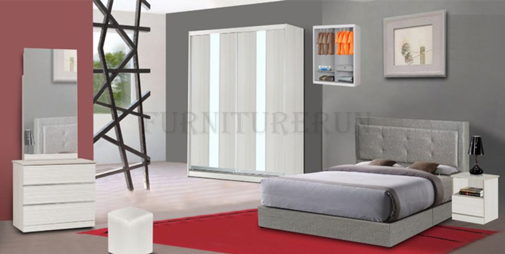 Bed Queen 005 - HB H33" / Divan H6"Dresser Table & Stool - L3'Side Table x 1Wardrobe - 6.5' x 5'