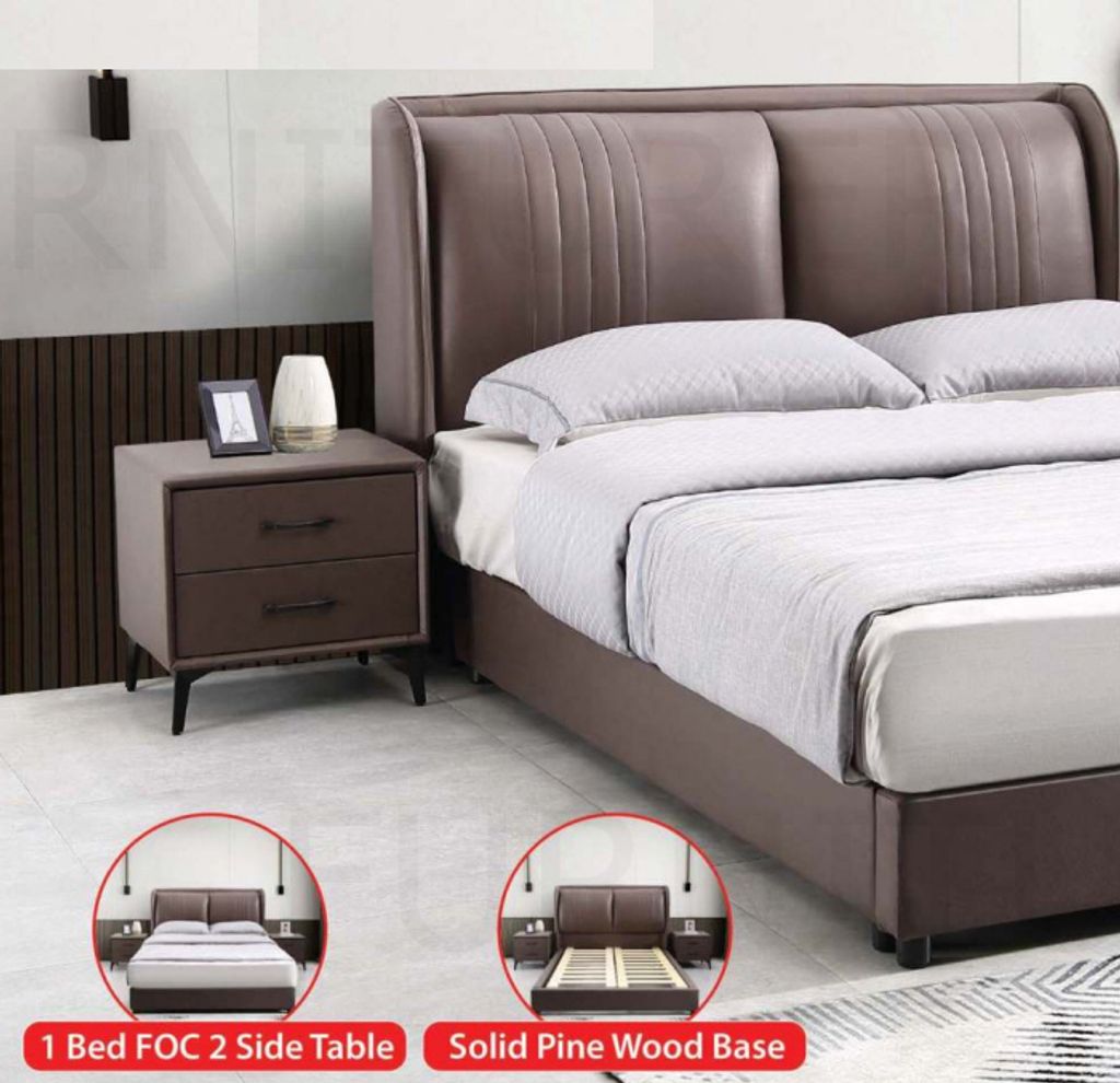 H1120 x D1920 x W1500MM Technology Fabric + Solid Pine Wood Base1 Bed FOC 2 Side TableMattress not Included