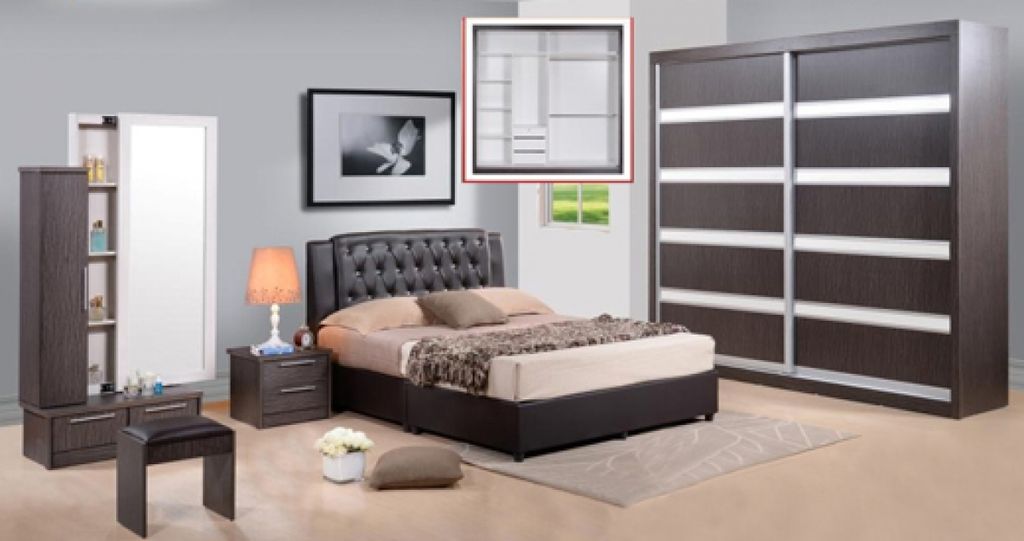 Queen Bed - H1110 x D2040 x W1530MM Wardrobe - H2400 x D610 x W2400MM Dresser & Mirror - H1820 x D400 x W810MM Bedside Table - H430 x D400 x W480MM