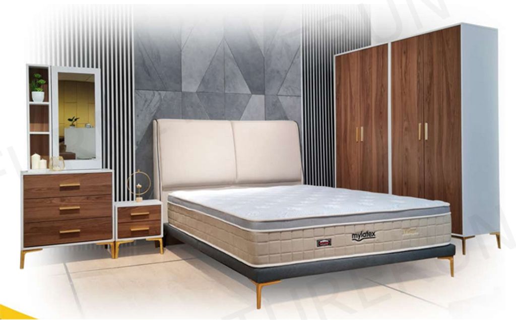Queen - H1000 x D1530 x W2050MM Wardrobe - H1950 x D500 x W1600MM Dresser - H1650 x D400 x W1700MM Bedside - H450 x D300 x W400MM Mattress Not Included