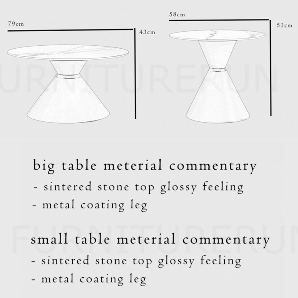 H430 x D790 x W790MM H510 x D580 x W580MM Sintered Stone Top Glossy Feeling / Metal Coating Leg