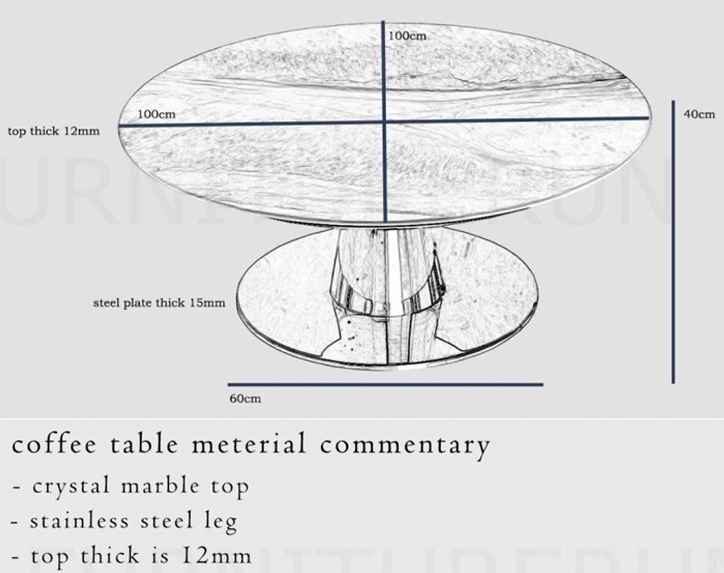 H400 x D1000 x W1000MM Top T12MM / Crystal Marble Top / Stainless Steel Leg