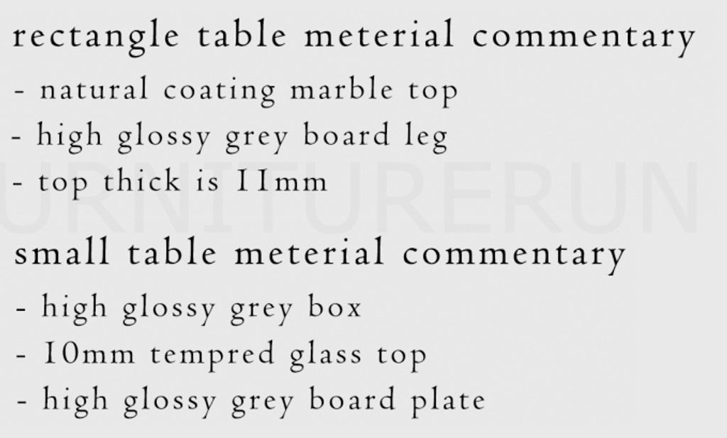 A - H400 x D300 x W300MMB - H350 x D900 x W900MMC - H500 x D600 x W600MM Top T11MM / Natural Coating Marble Top / High Gloss Grey Board LegTop T10MM Tempered Glass / High Gloss Grey Box / High Gloss Grey Board Plate
