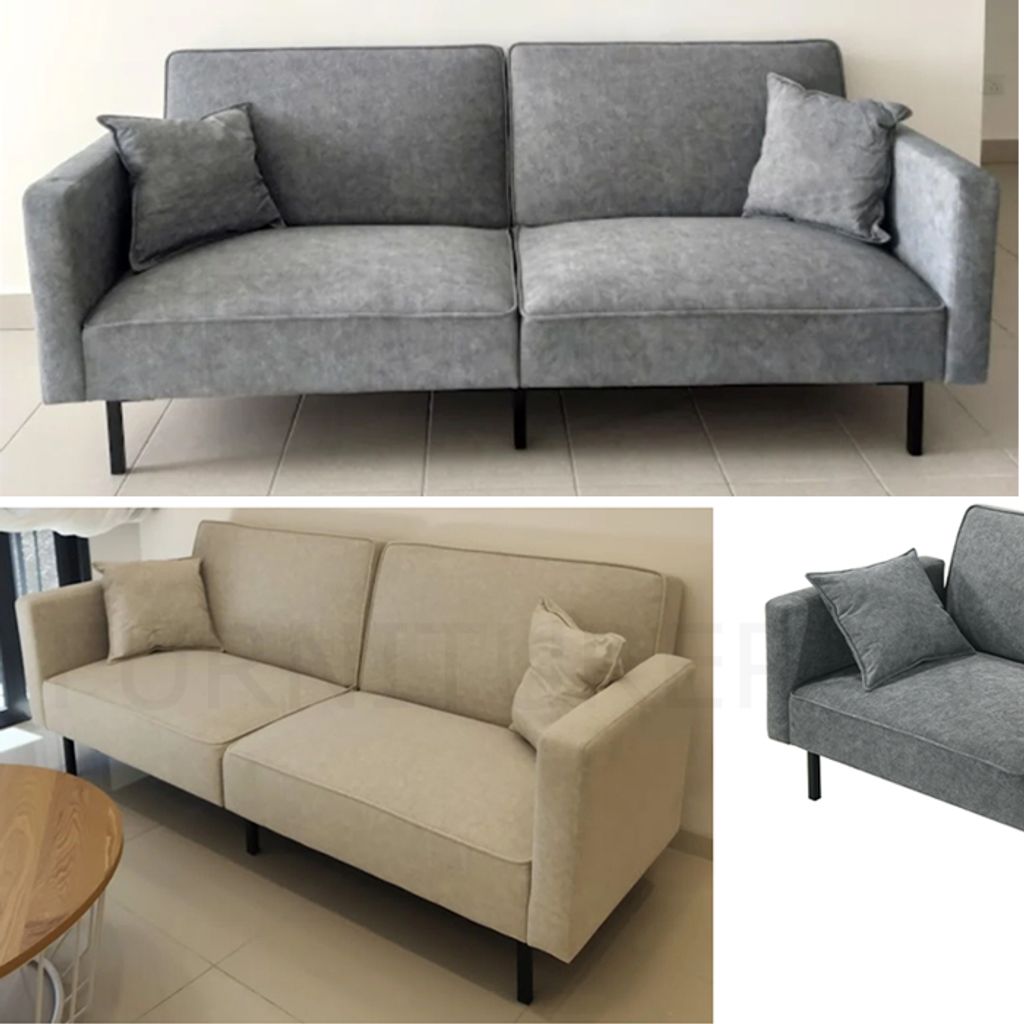 Sofa - H790 x D820/1060 x W1960MMBed - H395 x D560 x W1760MM Grey, Beige