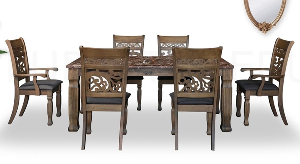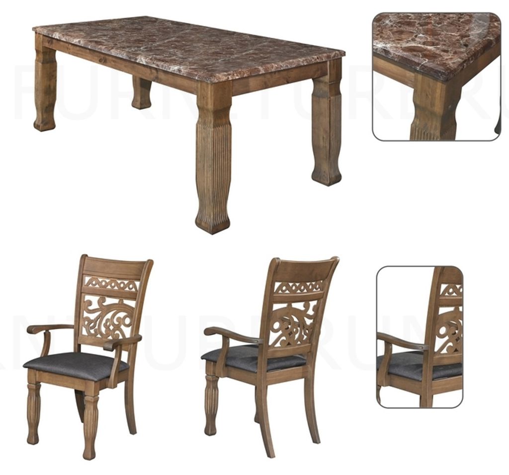 Darren-M6401 (T3180) Table - H750 x D900 x W1800MM Marble Top/Solidwood Table Leg/T35MMPhilip-C3908A (Fabric) Arm Chair - H1020 x D430 x W560MM Philip-C3908S (Fabric) Side Chair - H1020 x D430 x W560MM Walnut