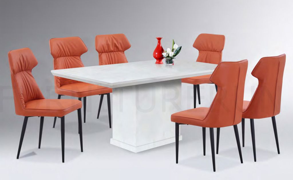 Table - H760 x W900 x L1600MM Chair - H920 x D400 x W470MM Fully Marble Dining TablePU Leather Upholstered with Steel Leg