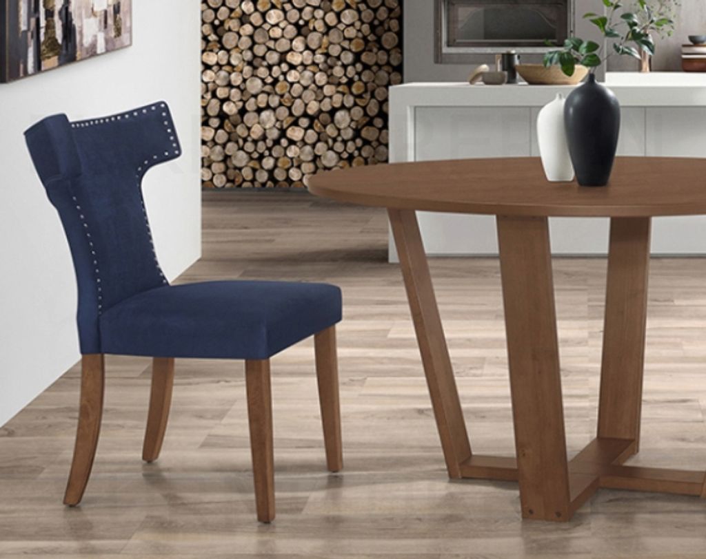 Table - H750 x Diam. 1310MM Chair - H925/490 x D630 x W590MM WalnutDark Blue, Dark Green