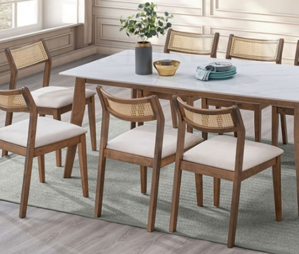 Table - H750 x D900 x W1800MM Sintered Stone Top Chair - H805/490 x D530 x W490MM Walnut