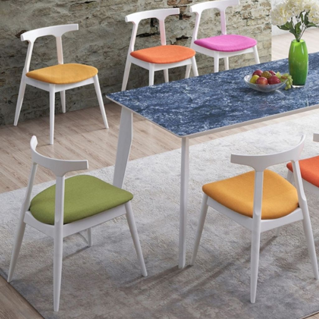Table - H750 x D900 x W1800MM Sintered Stone Top Chair - H750 x D580 x W525MM Walnut, WhiteFabric - Blue, Green, Grey, Orange, Purple, Yellow