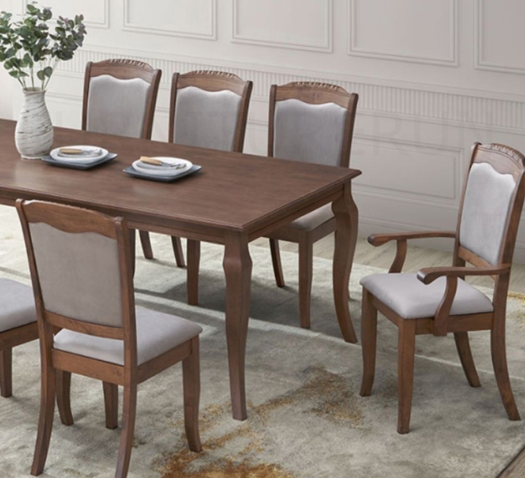 Table - H750 x D1060 x W2100MM Arm Chair - H950/485 x D555 x W540MM Side Chair - H950/485 x D555 x W465MM Walnut