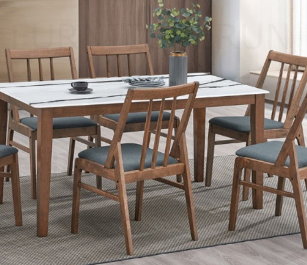 GOLD 13-TF35-S DFG-JH-JG-024-1500 (BK/WHT) + GOLD 14-2552-WL GREY 7PC Dining Set