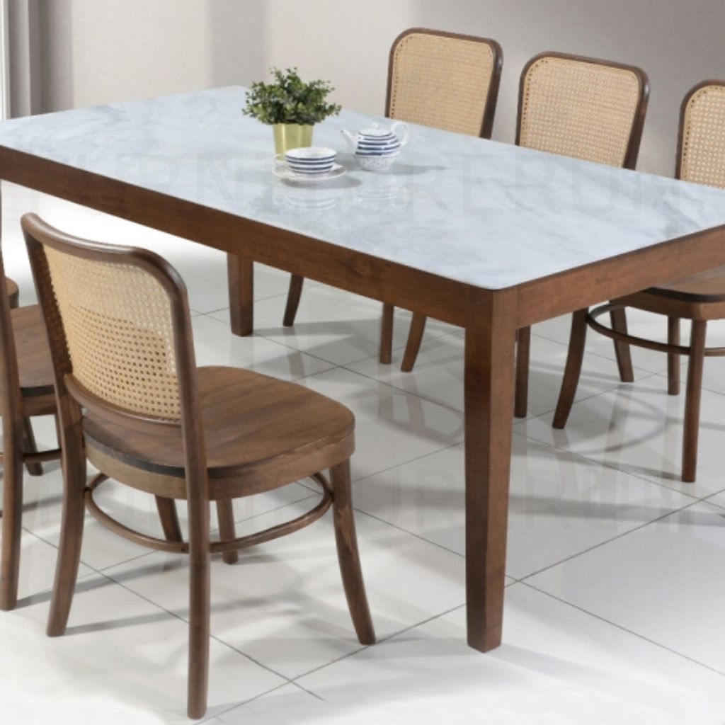 Table - H750 x D900 x W1800MM Crystal Marble Top + Walnut FrameChair - H880/440 x D510 x W455MM Walnut