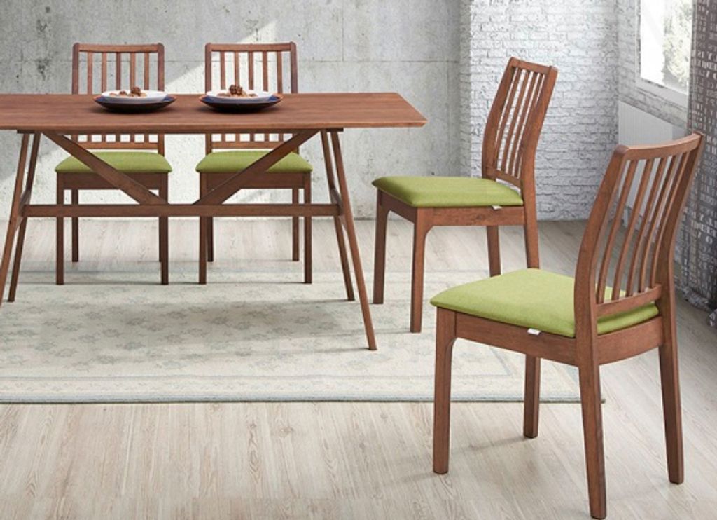 Table - H750 x D800 x W1600MM Chair - H895/476 x D565 x W455MM Fabric - GreenWalnut