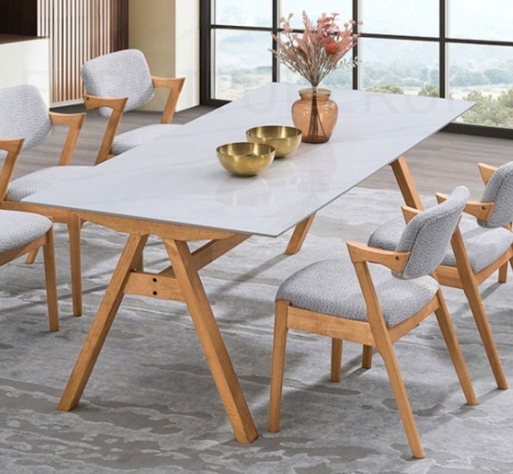 Table - H750 x D900 x W2000MM Sintered Stone TopChair - H780/475 x D590 x W490MM Light Grey 36#Muji