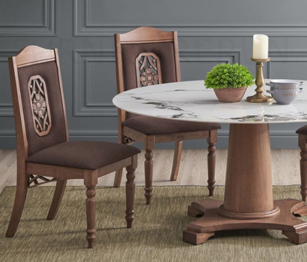 Table - H750 x Diam. 1350MM Sintered Stone TopChair - H1045 x D580 x W520MM Walnut