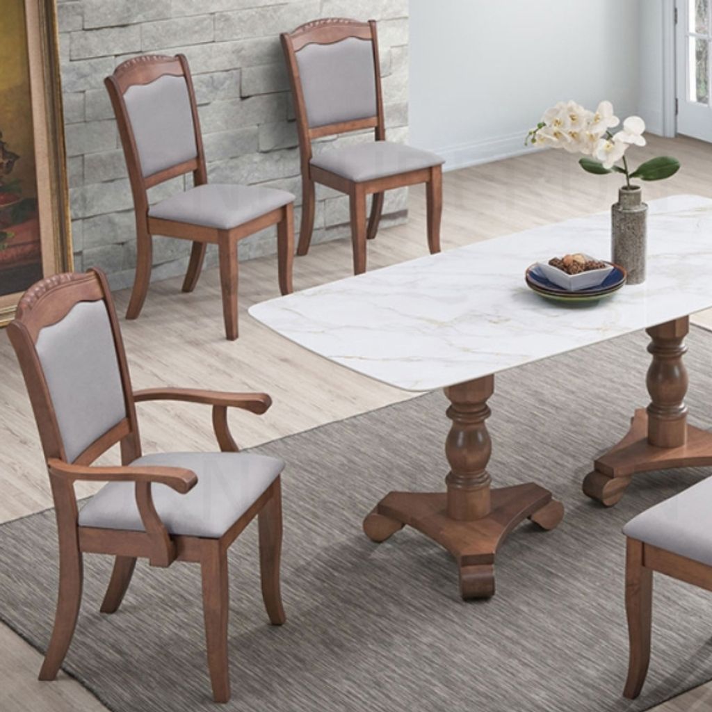 Table - H750 x D900 x W1800MM Sintered Stone Top Arm Chair - H950/485 x D555 x W540MM Side Chair - H950/485 x D555 x W465MM Walnut