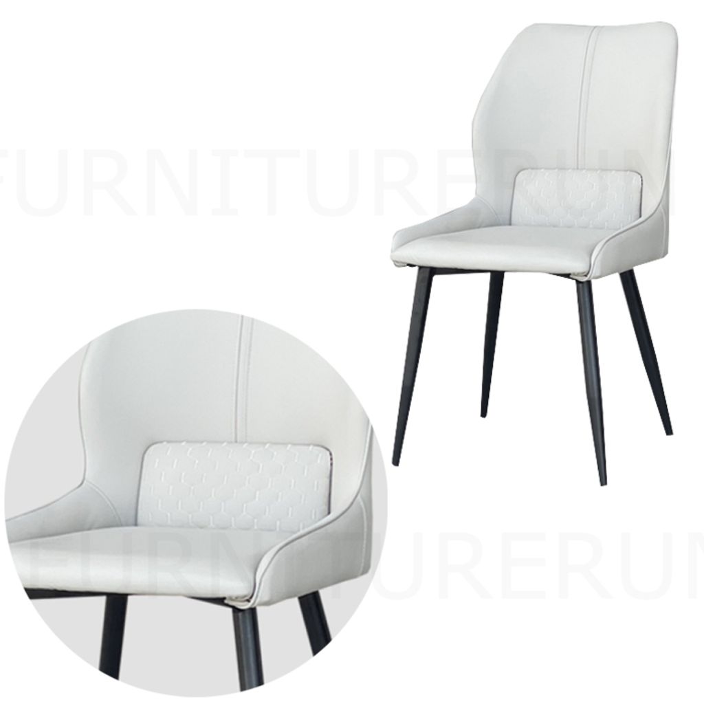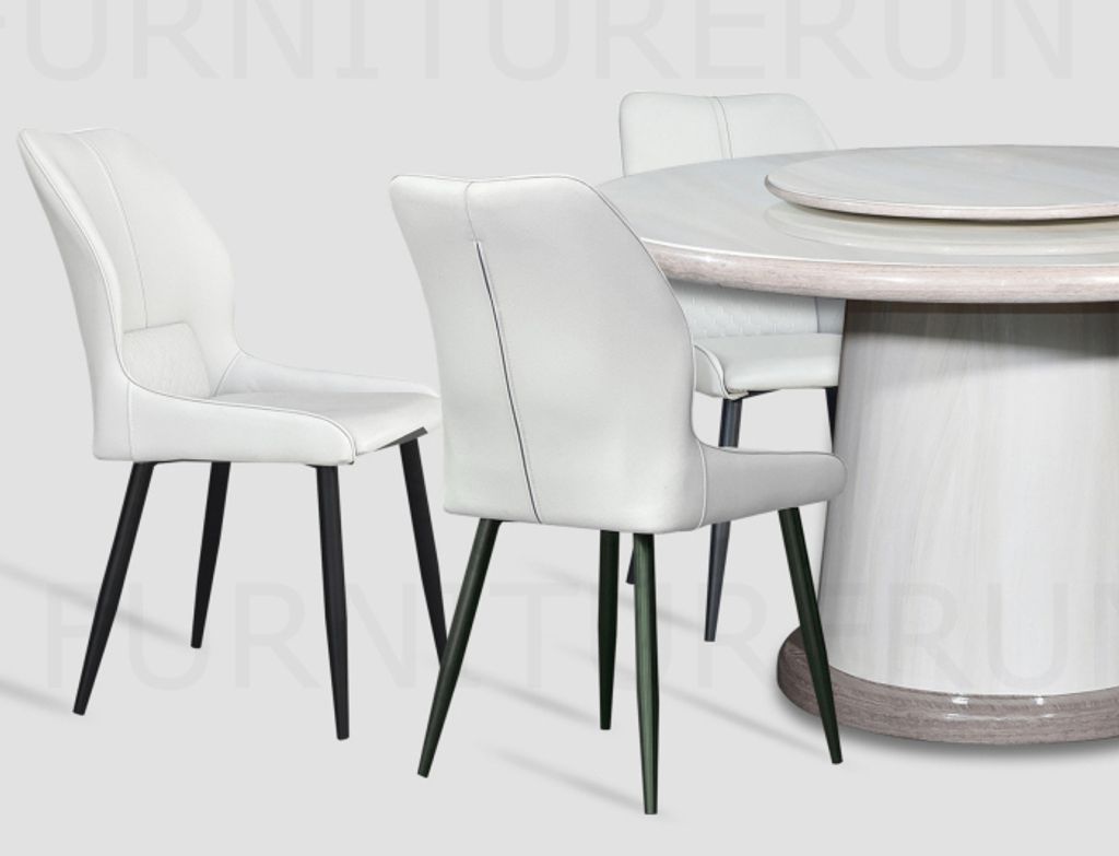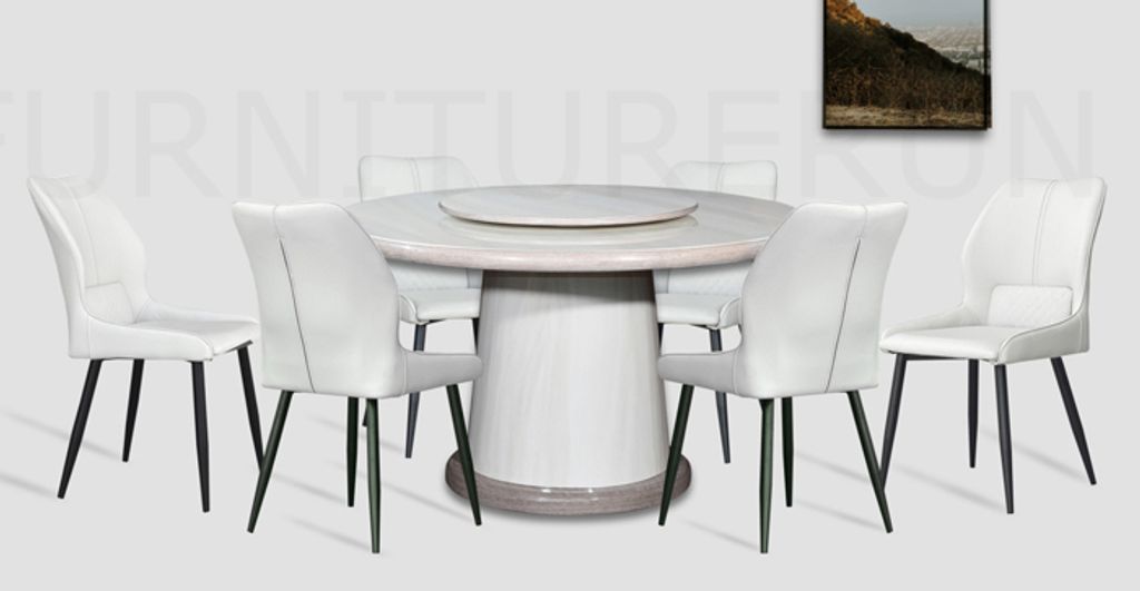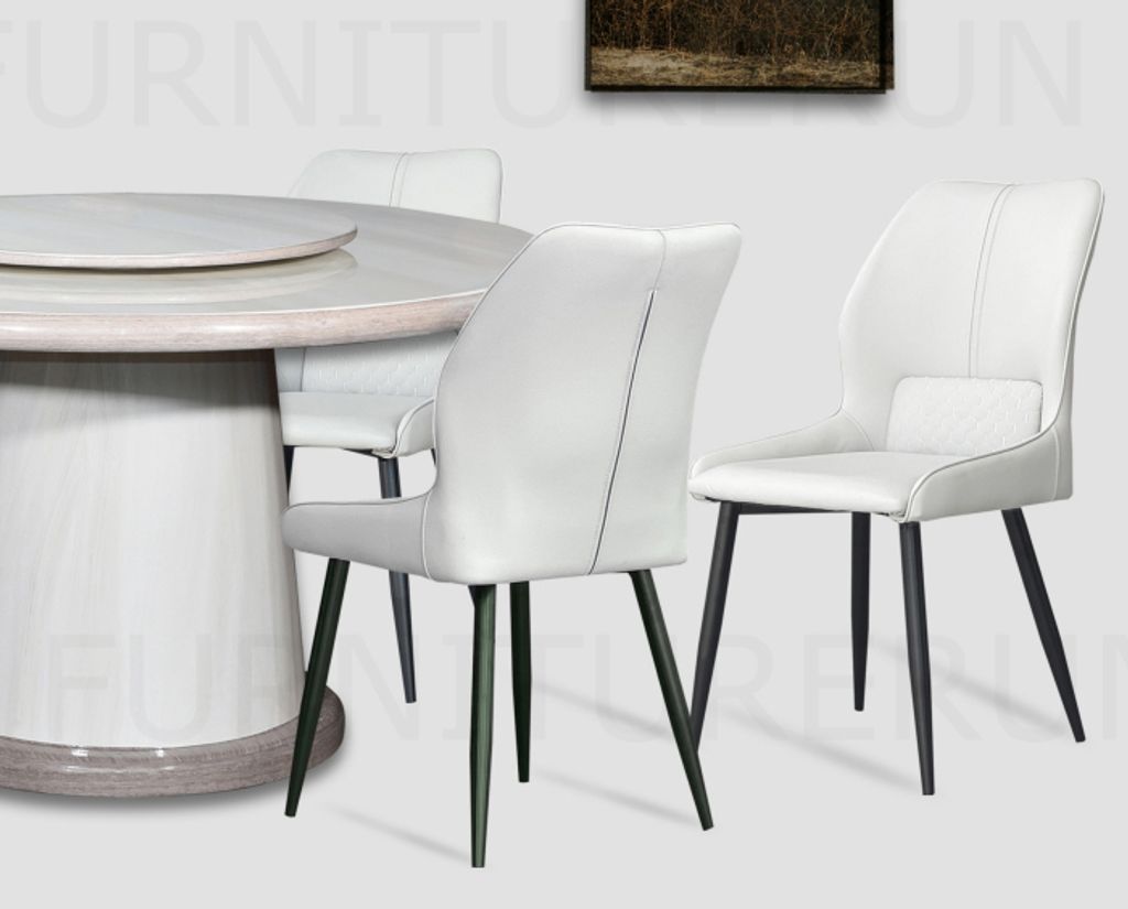 Table M35108 - H760 x D1500 x W1500 + 800MM Top T50MM / Natural Coating Marble Top & LegChair C1310G - H910 x D490 x W470MM Pet Friendly Leather Seat / Black Metal Leg