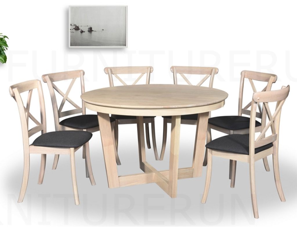 T1104W Table - H760 x Diam. 1200MM Full Solidwood/T20MMC3903W (Fabric) Chair - H890 x D400 x W450MM White Wash