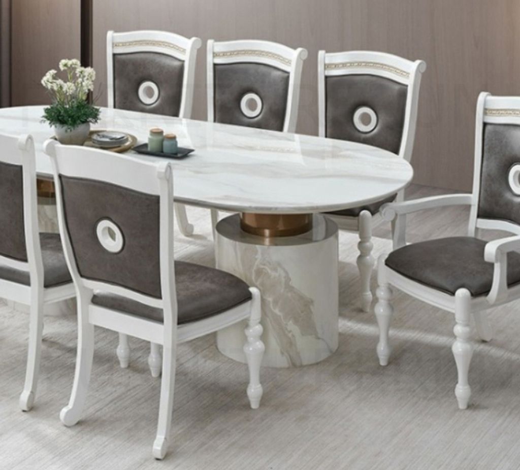 HT-DT-3986-1 + GOLD 21-321-PEARL WHT-AC/SC 9PC Dining Set
