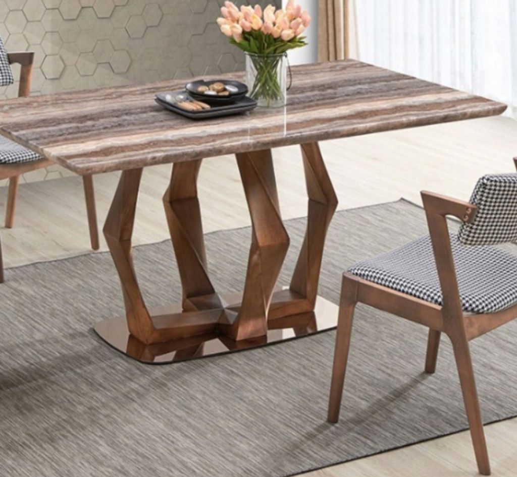 Table - H750 x D900 x W1600MM Marble Top & Wooden Leg + Stainless Steel Bast Top - 0713 BrownChair - H790/465 x D585 x W540MM M25 Walnut