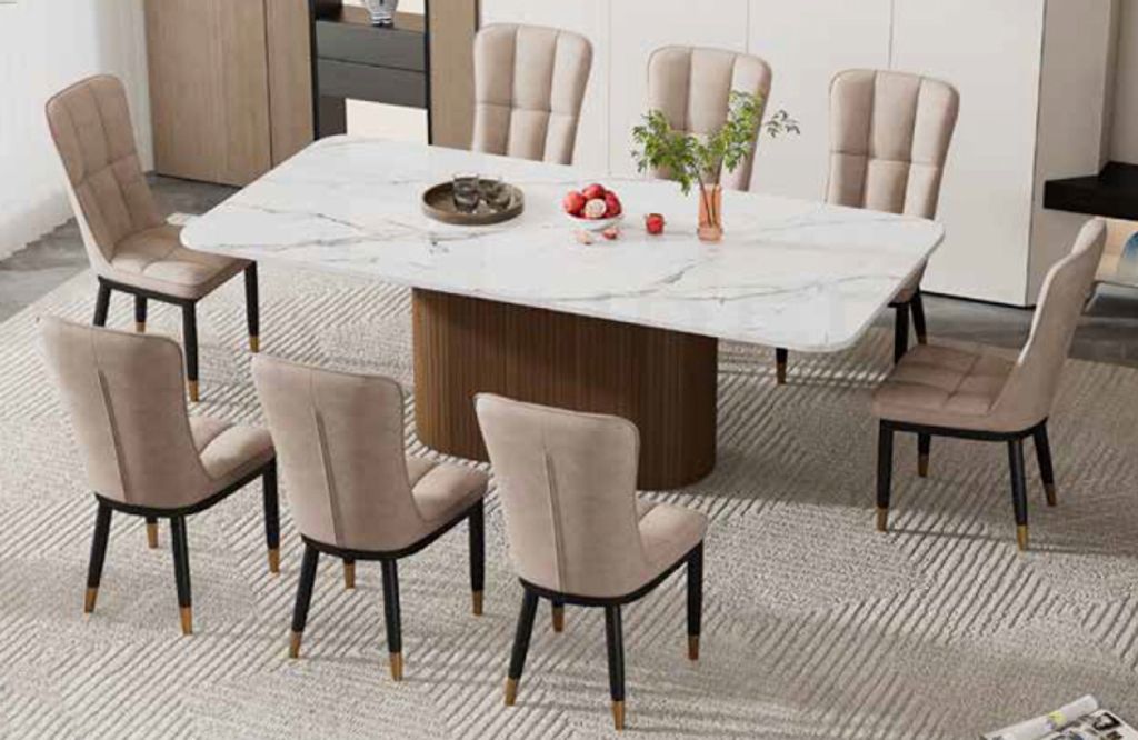 Table - H760 x D900 x W1800MMChair - H970 x D430 x W470MM Solid Wood Veneer Leg with Glossy Ceramic Top