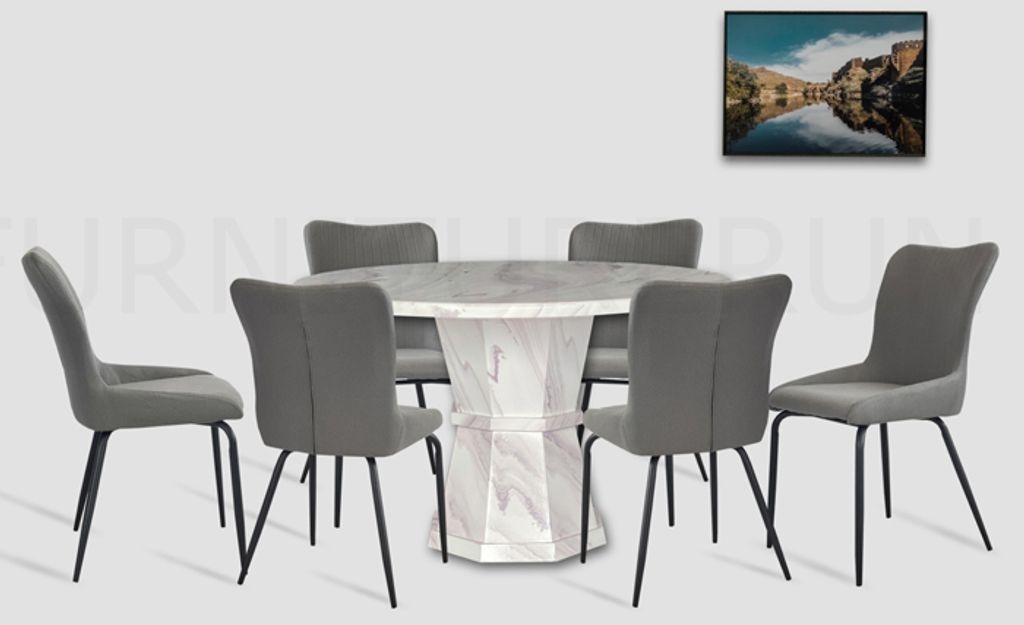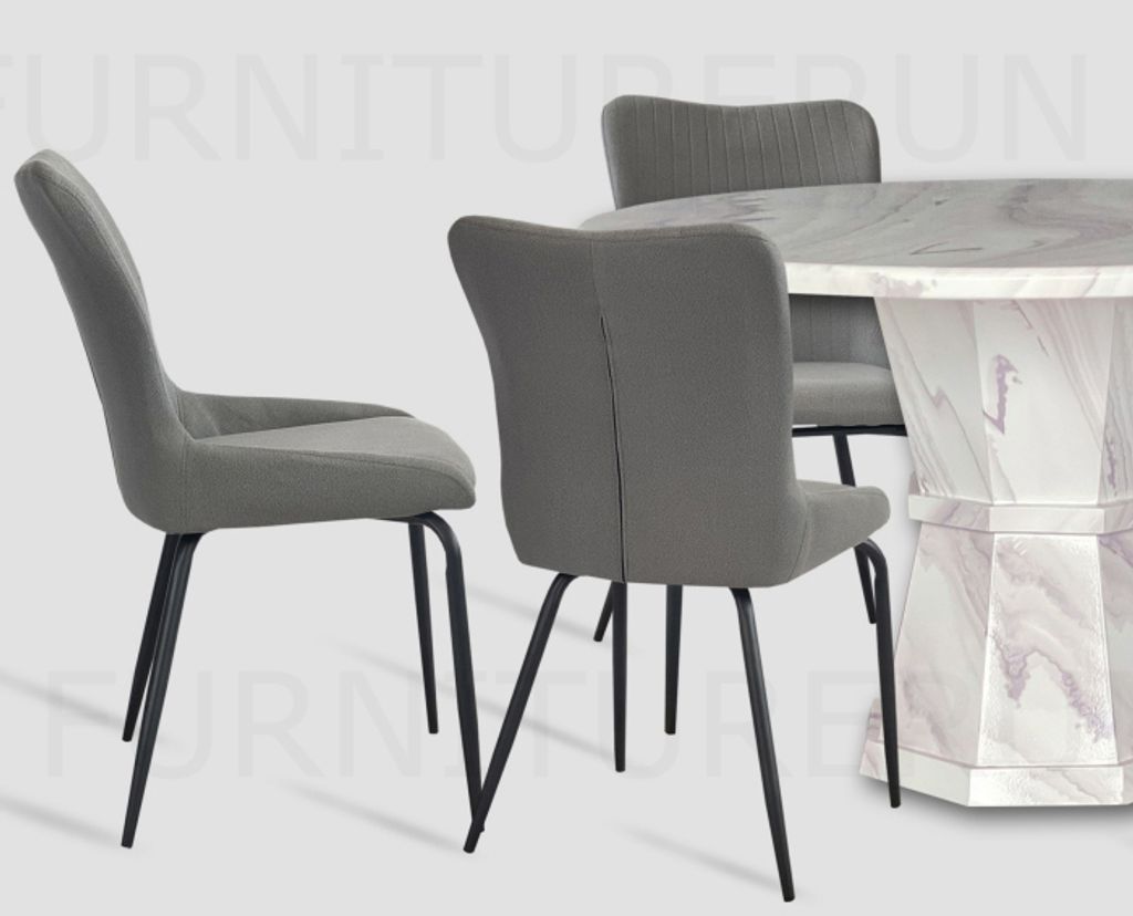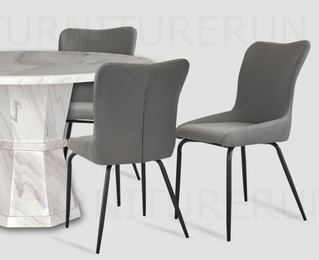 Table M14104 - H760 x D1200 x W1200MM Top T36MM / Natural Coating Marble Top & LegChair C1170 - H870 x D460 x W460MM Fabric Seat / Black Metal Leg