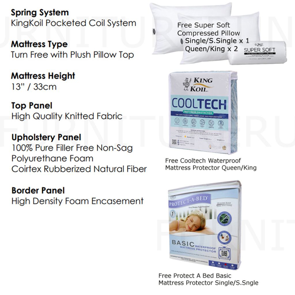 Pocketed Coil System High Quality Knitted Fabric 100% Pure Filler Free Non-Sag Polyurethane Foam Coirtex Rubberized Natural Fibre High Density Foam Encasement Anti Dust Mite Turn-Free with Plush Pillow Top Thickness 13"/33CM 15 Years Warranty