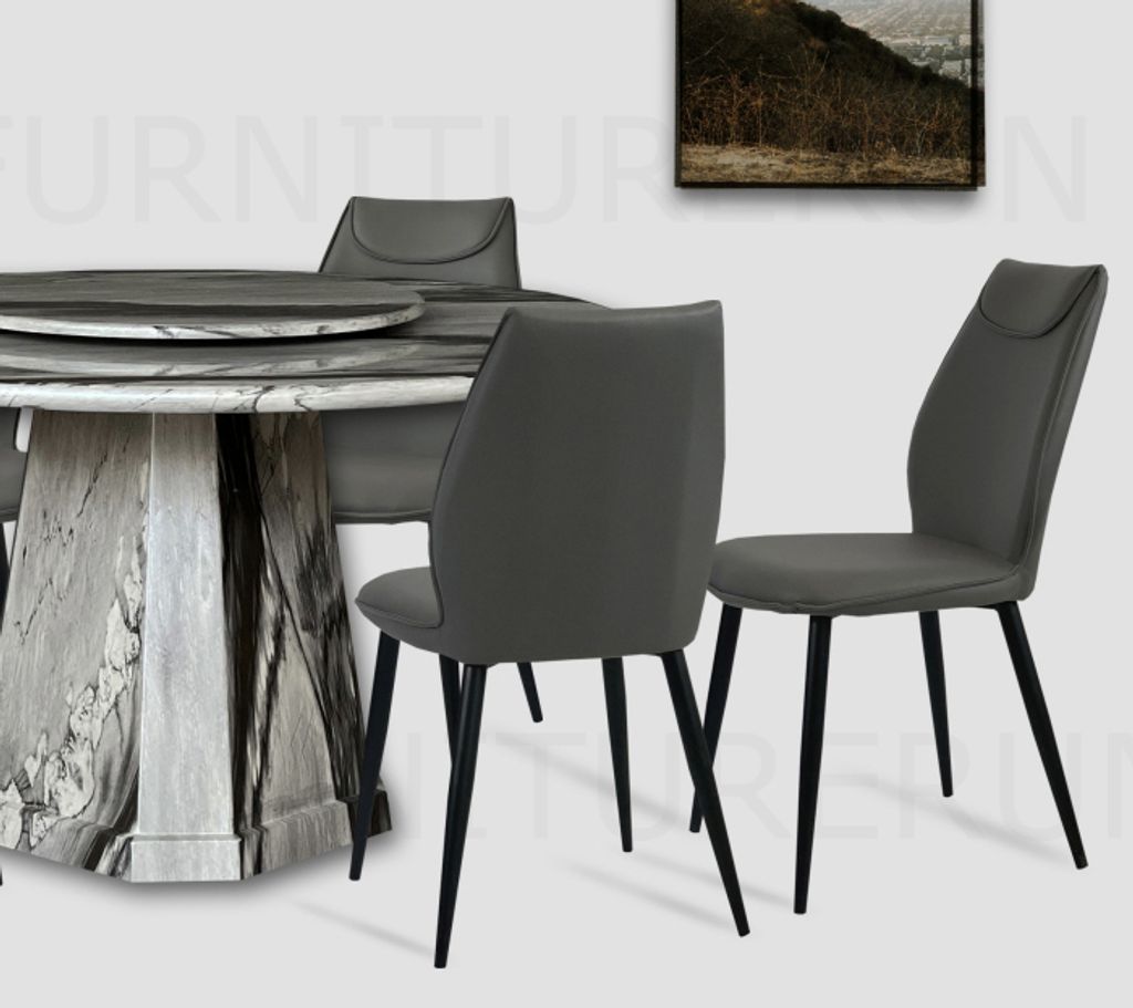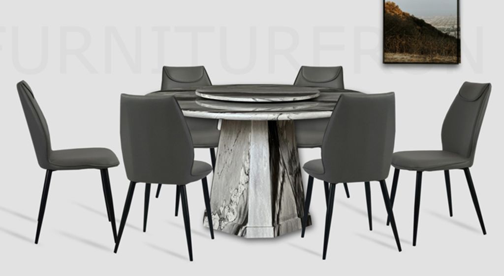 Table M35126 - H760 x D1500 x W1500 + 800MM Top T50MM / Natural Coating Marble Top & LegChair C1240B - H900 x D500 x W470MM Fabric Seat / Black Metal Leg