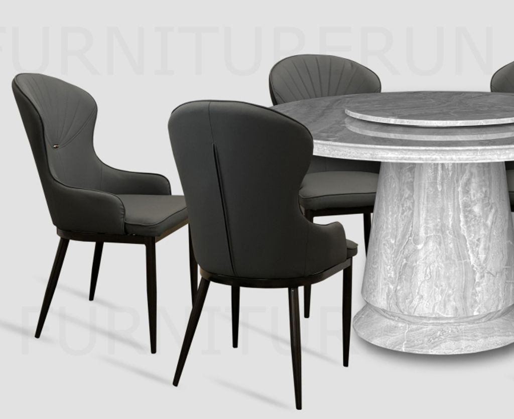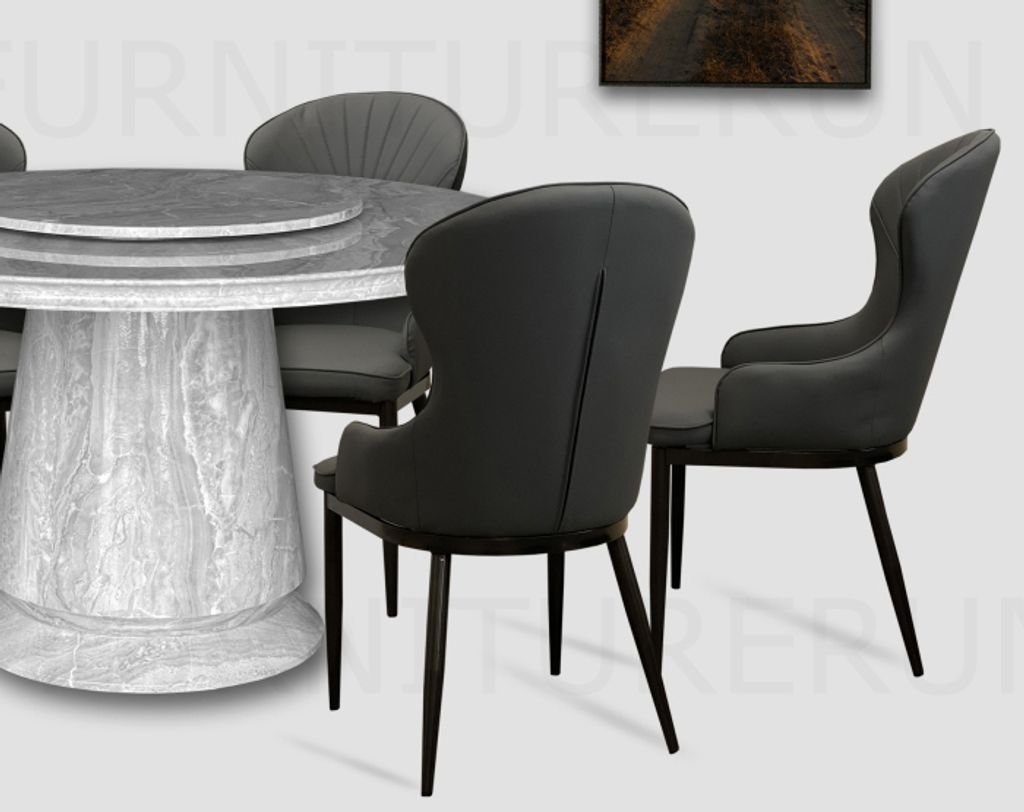 Table M35125 - H760 x D1500 x W1500 + 800MM Top T50MM / Natural Coating Marble Top & LegChair C1300G - H950 x D510 x W490MM Pet Friendly Leather Seat / Black Titanium Metal Leg