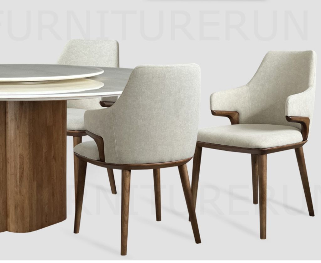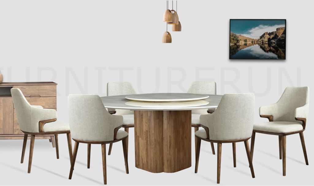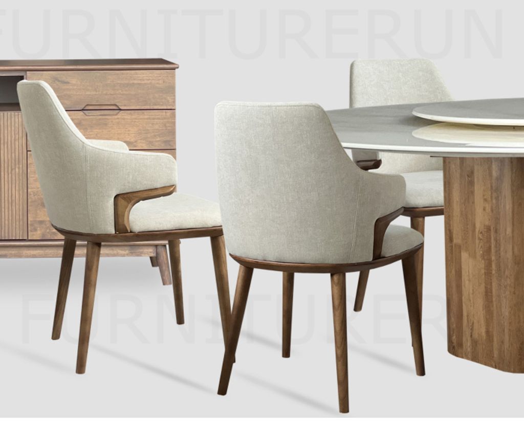 Table M9201-160 T401 - H760 x D1600 x W1600 + 800MM Top T20MM / Natural Luxury Stone & Solidwood LegChair C914 - H870 x D540 x W530MM Fabric Seat / Ash Wood Leg