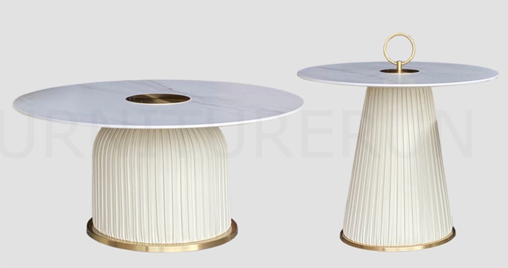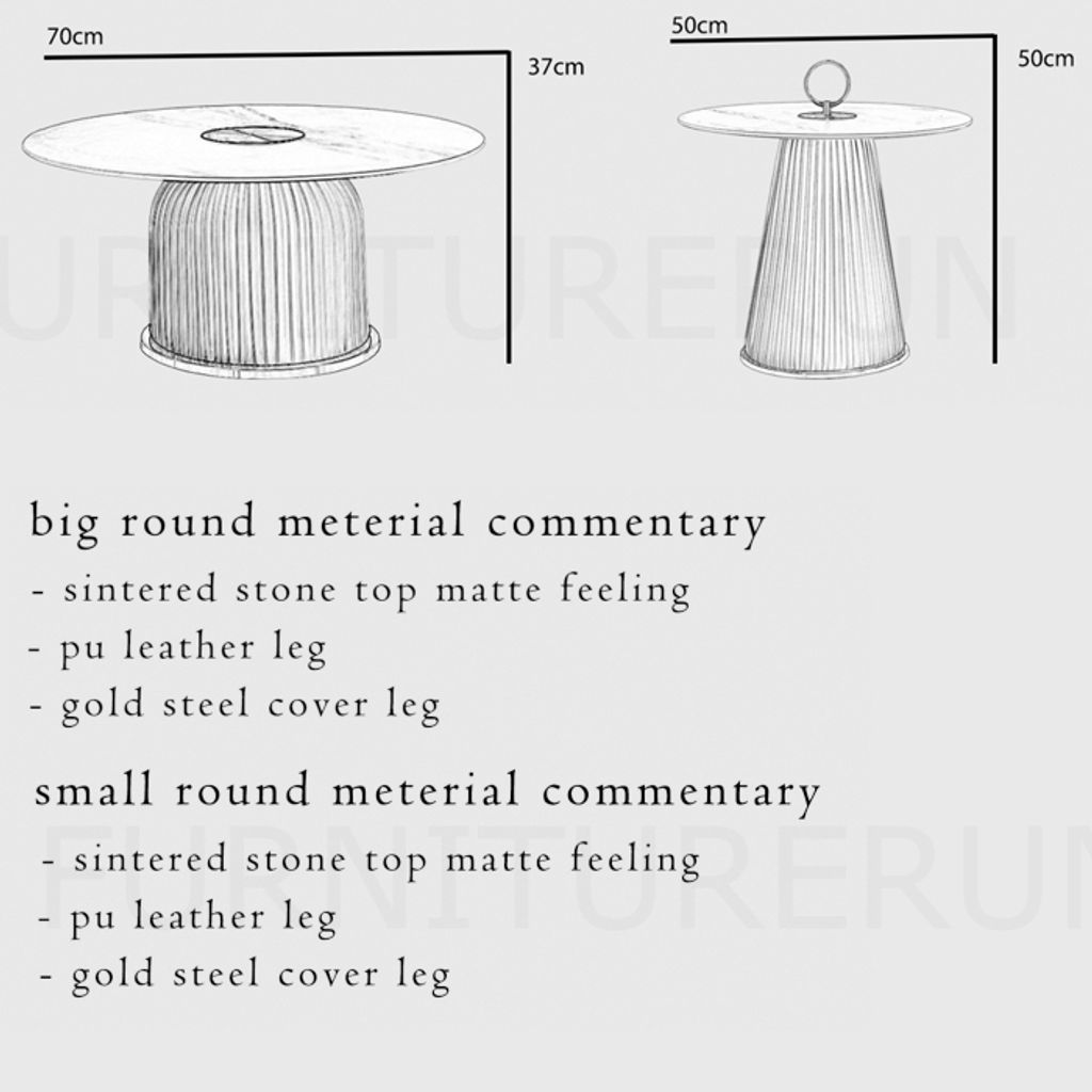H370 x D700 x W700MM H500 x D500 x W500MM Sintered Stone Top Matte Feeling / PU Leather Leg / Gold Steel Cover Leg