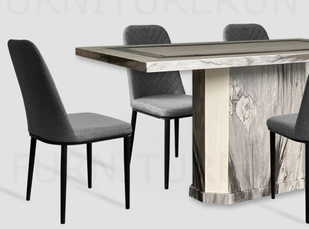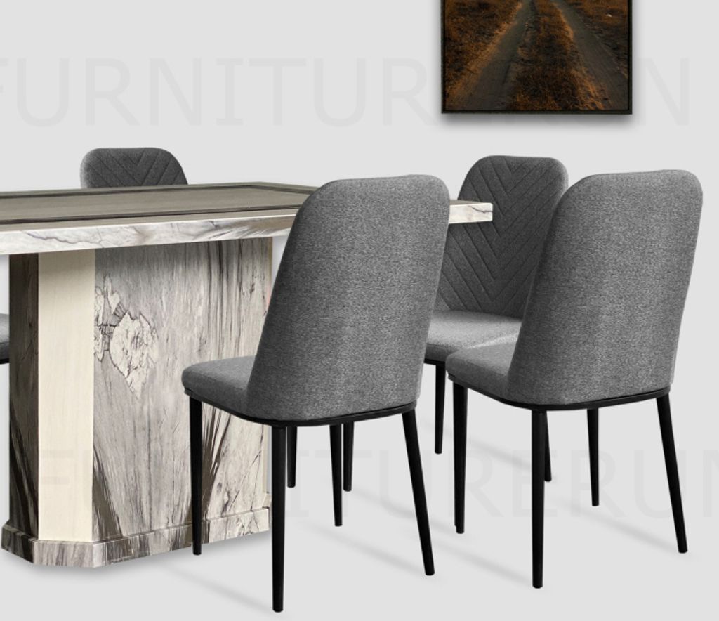 Table M64105 - H760 x D900 x W1800MM Top T36MM / Natural Coating Marble Top & Leg Chair C201 - H880 x D450 x W440MM Fabric Seat / Black Metal Leg