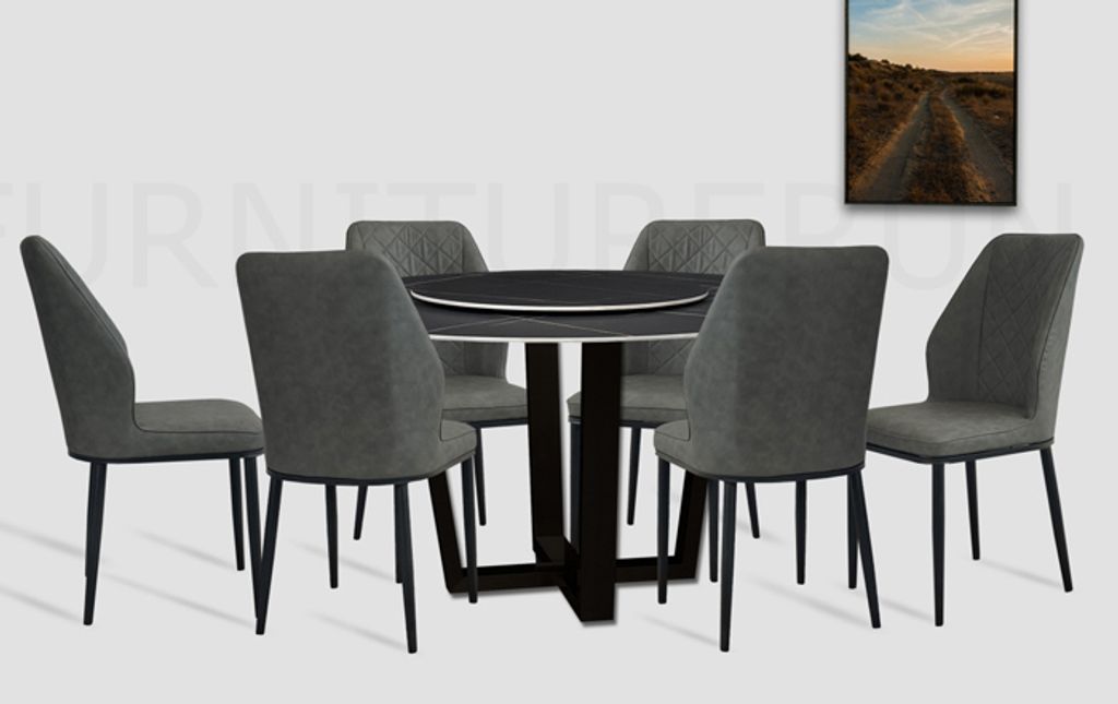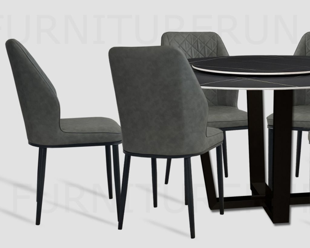 Table MT8902 T32B - H760 x D1500 x W1500 + 800MM Sintered Stone Top Matte Feeling / Black Metal LegChair C1210 - H900 x D500 x W500MM PU Leather Seat / Black Metal Leg