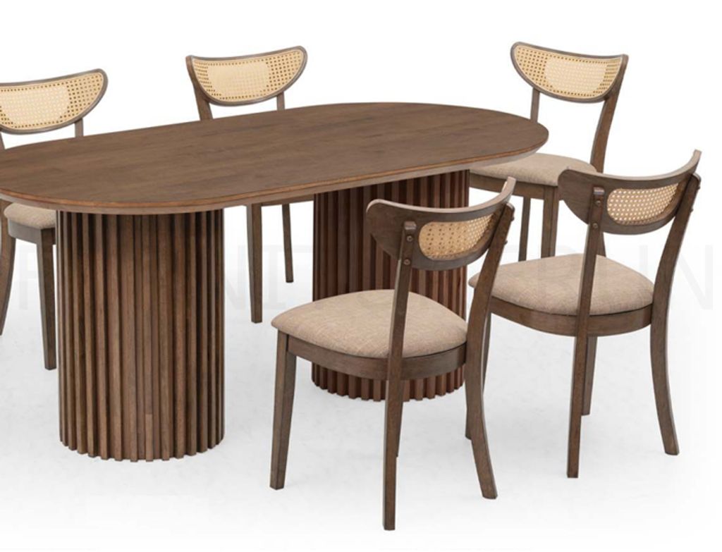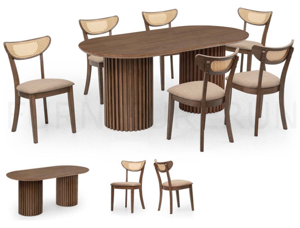 Table - H750 x D900 x W1800MM Walnut/Black/NaturalFull Solidwood RubberwoodChair - H840/480 x D520 x W470MM Walnut Brown/Natural Grey/Black GreySolidwood Rubberwood/Plastic Rattan