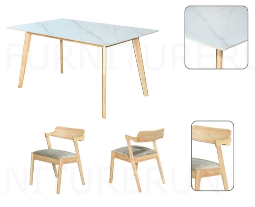 MT8405-150 (T9140N) Table - H760 x D900 x W1500MM Sintered Top/Solidwood Table Leg/T18MMC9901N (Fabric) Chair - H730 x D460 x W510MM Natural