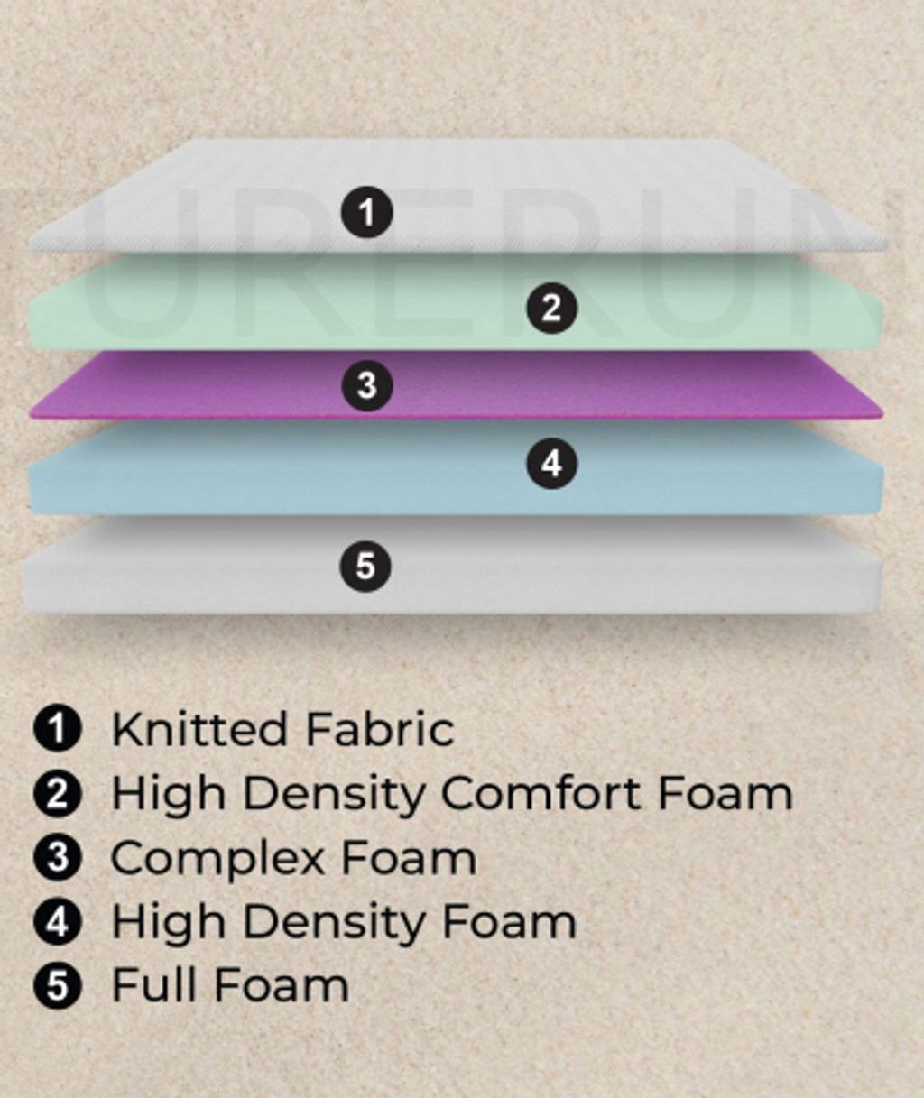 Knitted FabricHigh Density Comfort FoamComplex FoamHigh Density FoamFull FoamWarm SleepThickness 10"Firm