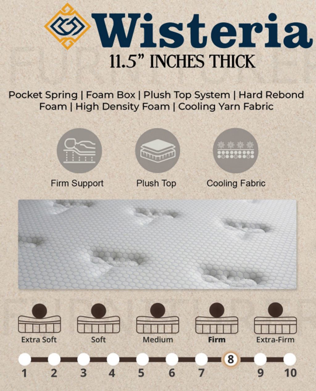 Cooling Yarn FabricHigh Density FoamComplex FoamPlush Top SystemFoam BoxNano Pocket Coil SystemCooling FabricThickness 11.5"Firm