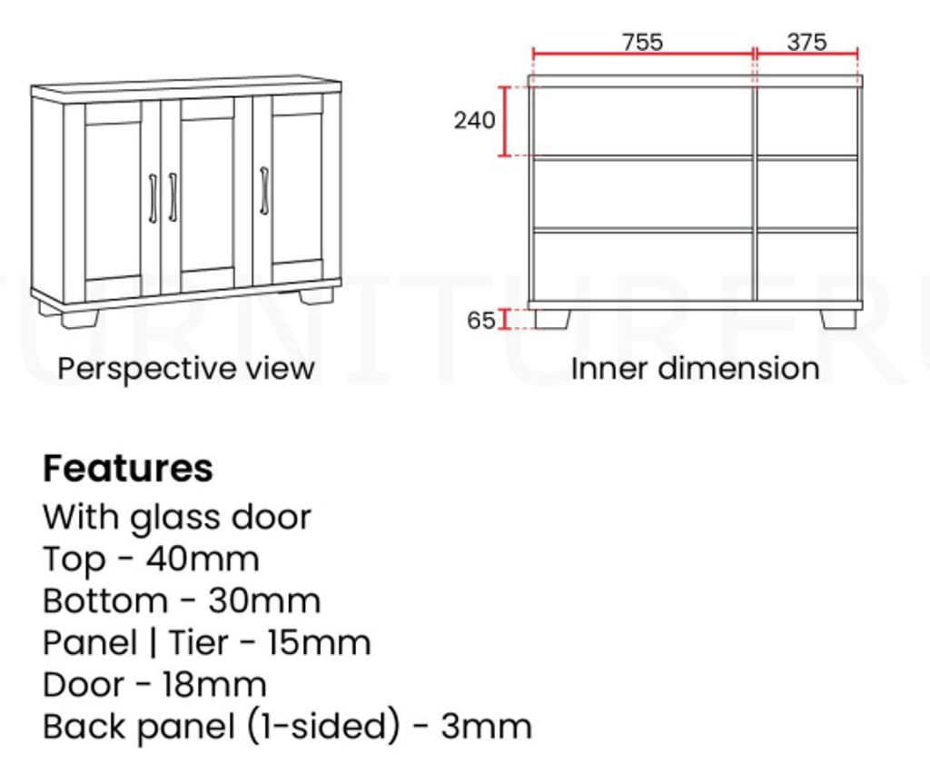 H870 x D400 x W1180MM